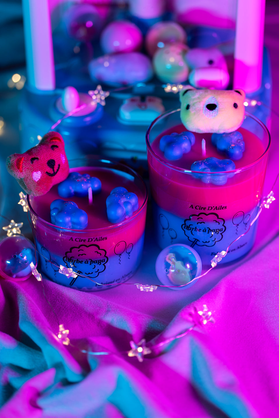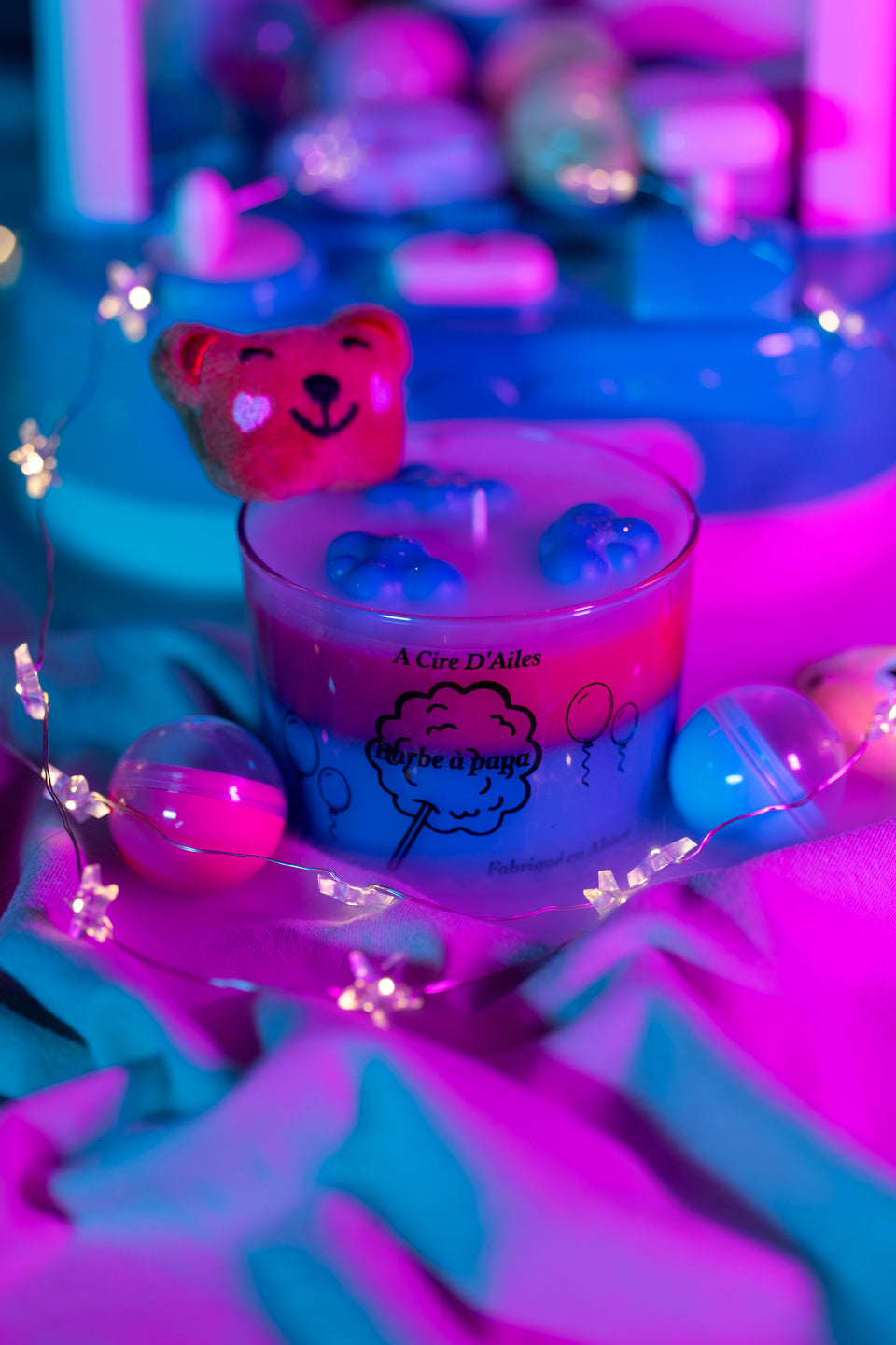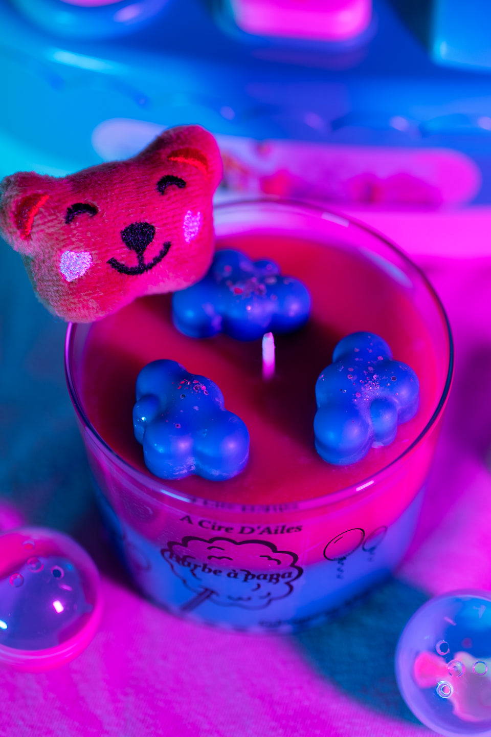 Bougie parfum barbe à papa. Pour une ambiance de fête foraine depuis votre salon.