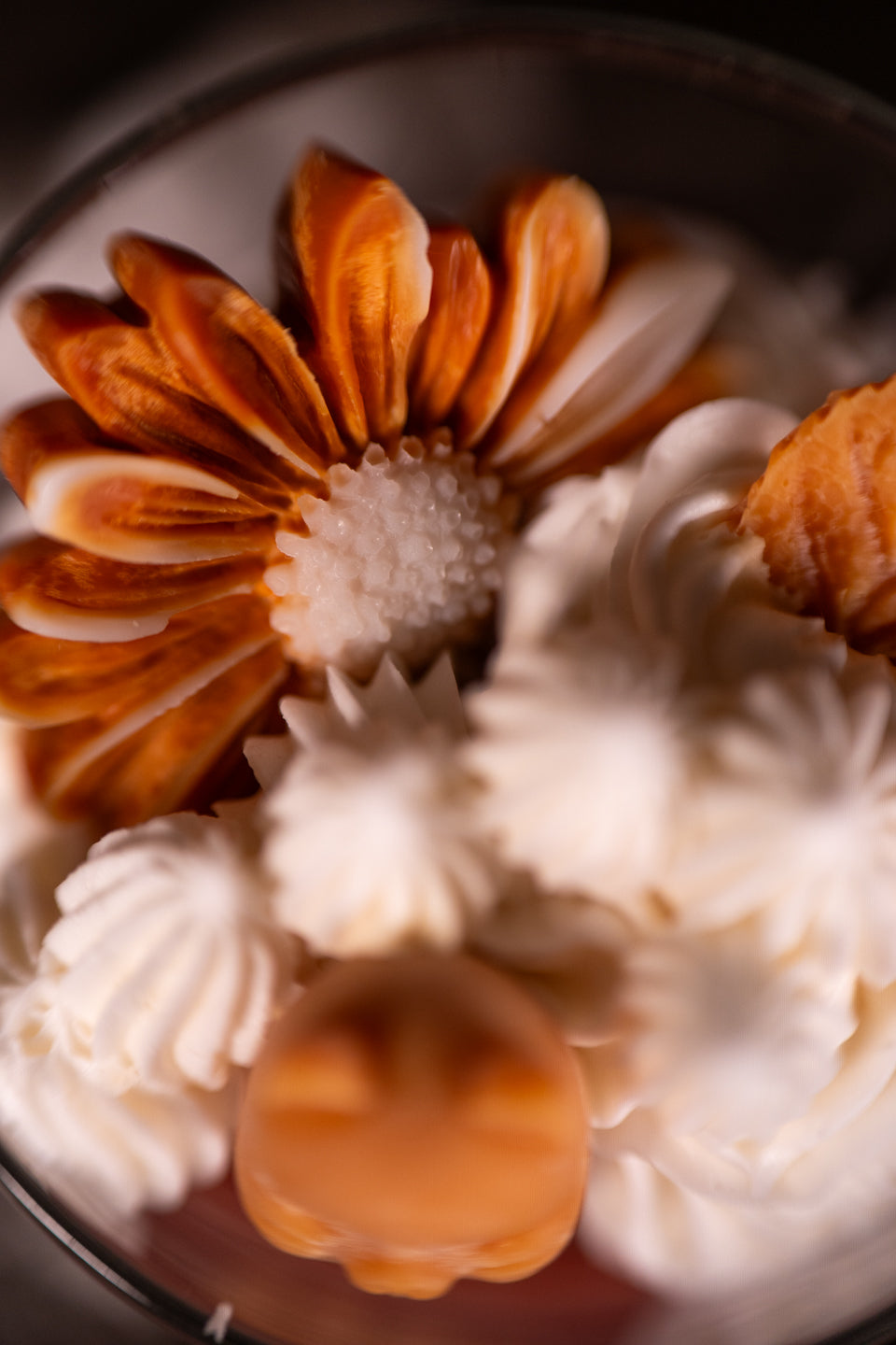 Bougie parfum noix de coco. Avec son petit chat, sa fleur et ses feuilles assorties.