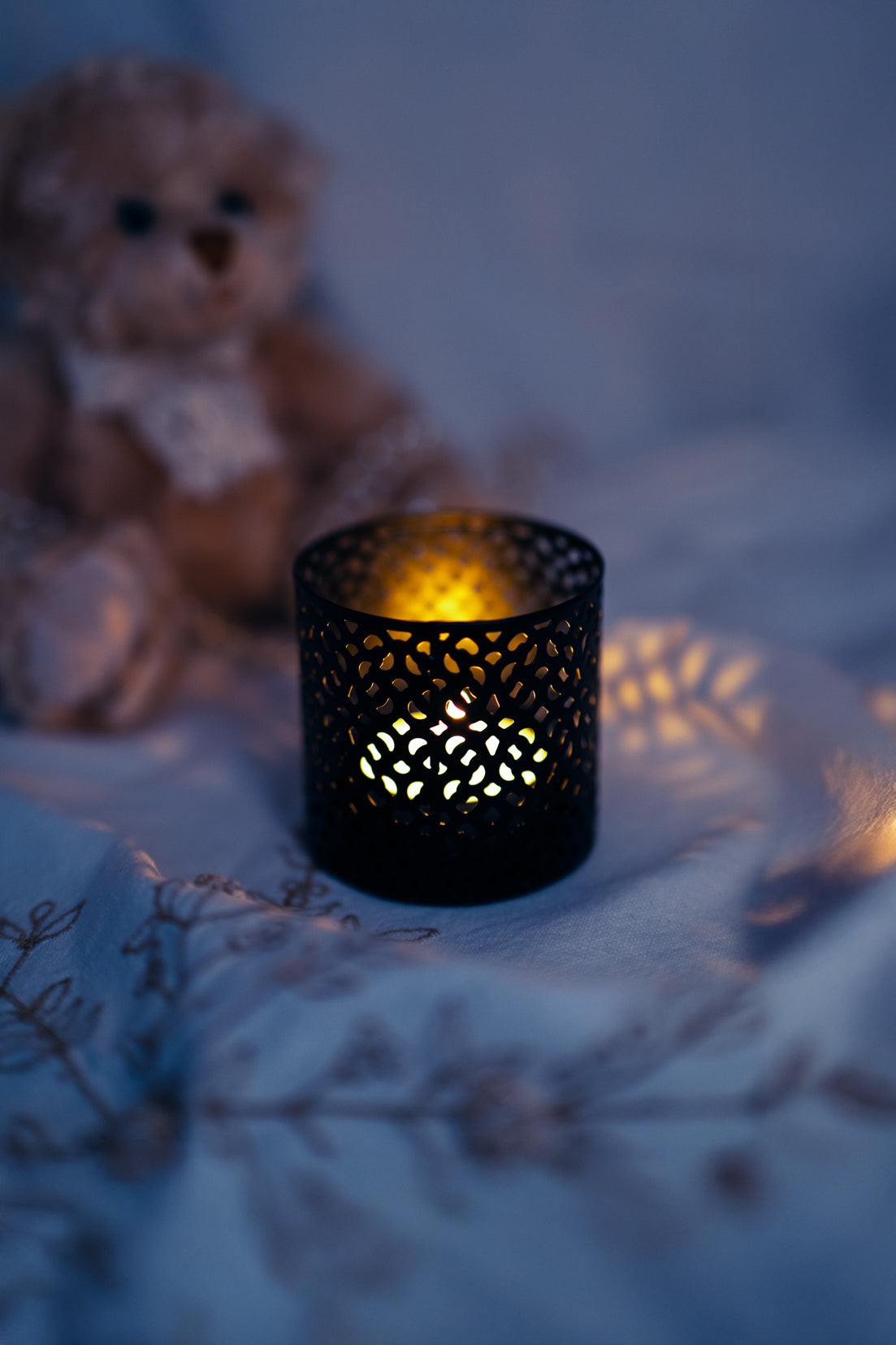 Joli petit photophore en acier ajouré.